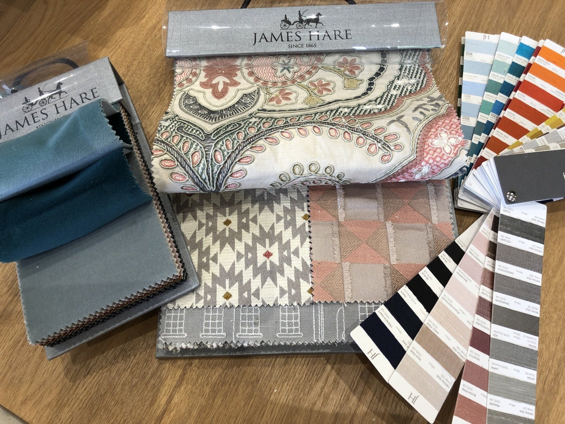 We keep around 250 carefully selected sample books of current fabric collections, from a small number of trusted suppliers. We feel this is about right to provide an abundance of choice without being too overwhelming. Our collections reflect both current trends and traditional classics, with almost every fabric design, colour, composition and price range represented. The only thing that doesn't change is the consistently high quality of the fabrics we offer.